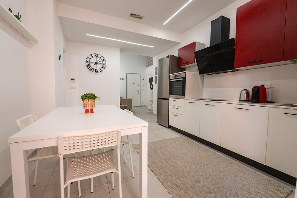 L'appartamento è un bilocale grande, di 56 mq, con una camera da letto, una spaziosa cucina con balconcino e un salottino con bagno.